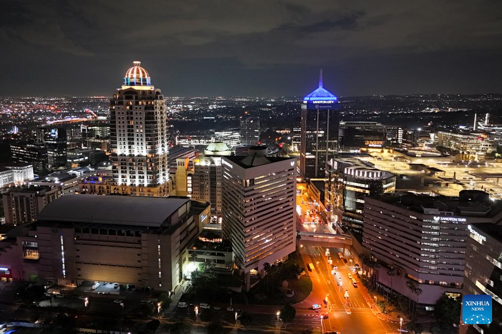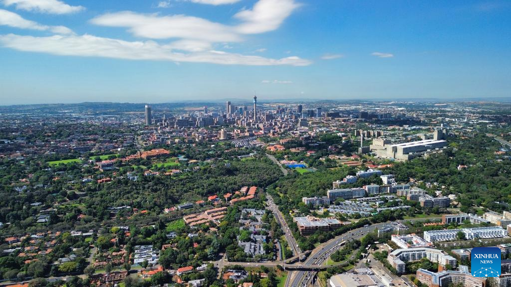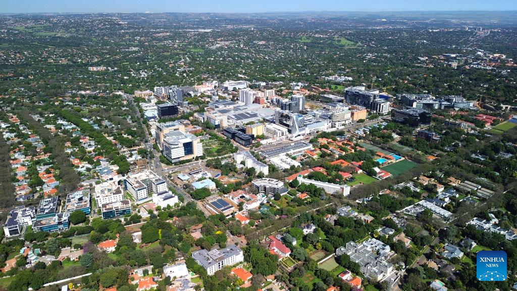 An aerial drone photo taken on Nov. 19, 2025 shows a view of Sandton in Johannesburg, South Africa. Johannesburg is South Africa's largest city and economic hub. (Photo by Shiraaz Mohamed/Xinhua)