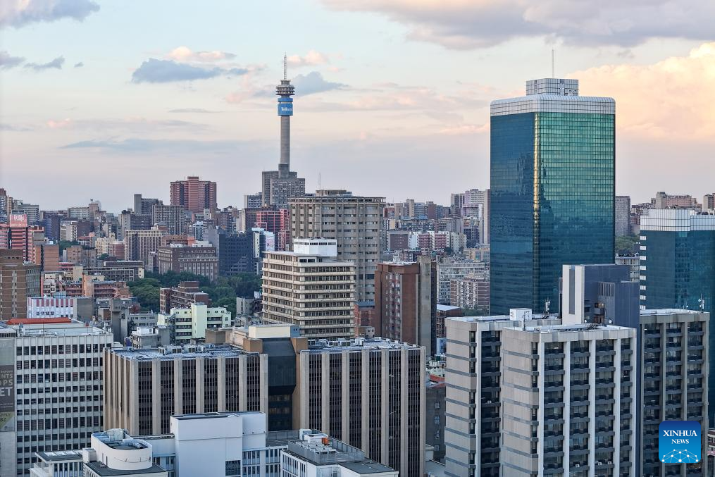 An aerial drone photo taken on Nov. 19, 2025 shows a view of the Central Business District (CBD) in Johannesburg, South Africa. Johannesburg is South Africa's largest city and economic hub. (Xinhua/Chen Wei)