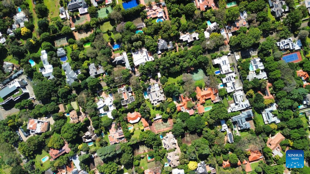 An aerial drone photo taken on Nov. 19, 2025 shows a view of Melrose Estate in Johannesburg, South Africa. Johannesburg is South Africa's largest city and economic hub. (Xinhua/Chen Wei)