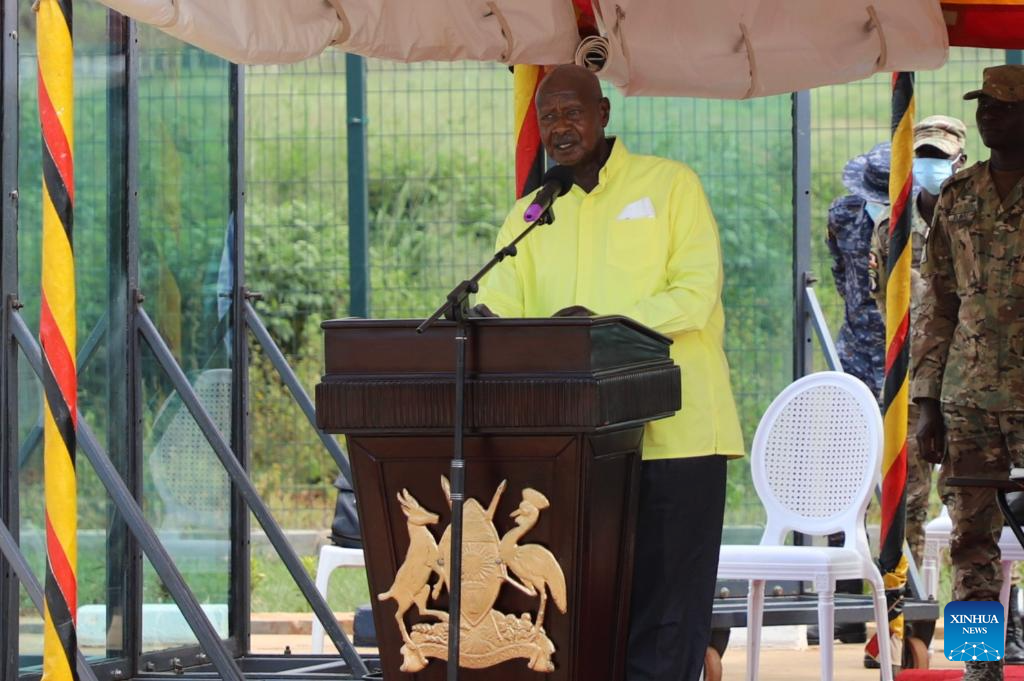 Ugandan President Yoweri Museveni speaks at the flag-off event of Uganda's first dried chili shipment to China, in Kamuli, Uganda, Nov. 20, 2025. Ugandan President Yoweri Museveni has flagged off the country's first shipment of dried chili to China, one year after the two countries signed a bilateral agreement allowing the agricultural product to access the Chinese market.(Photo by Ronald Ssekandi/Xinhua)