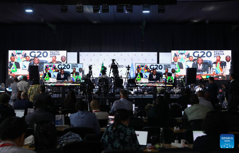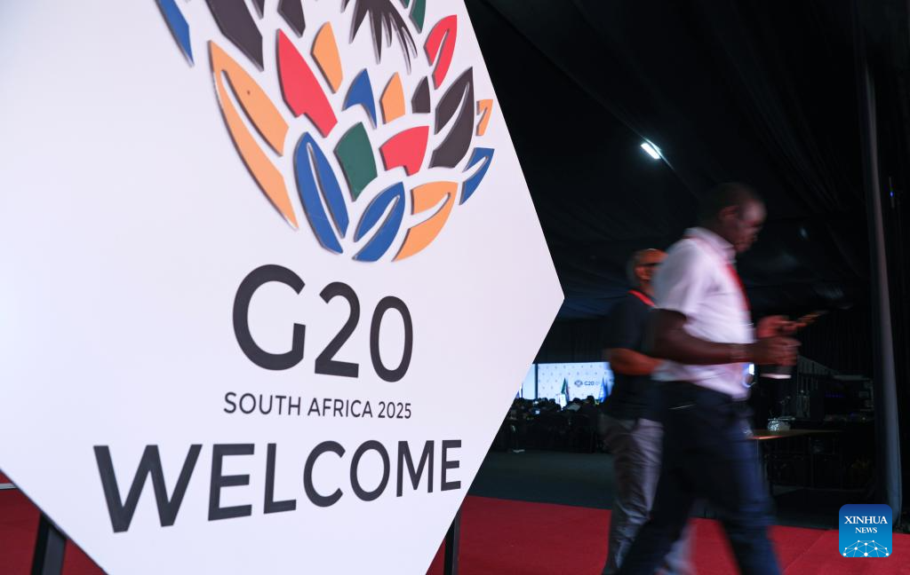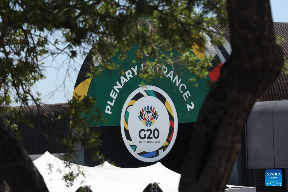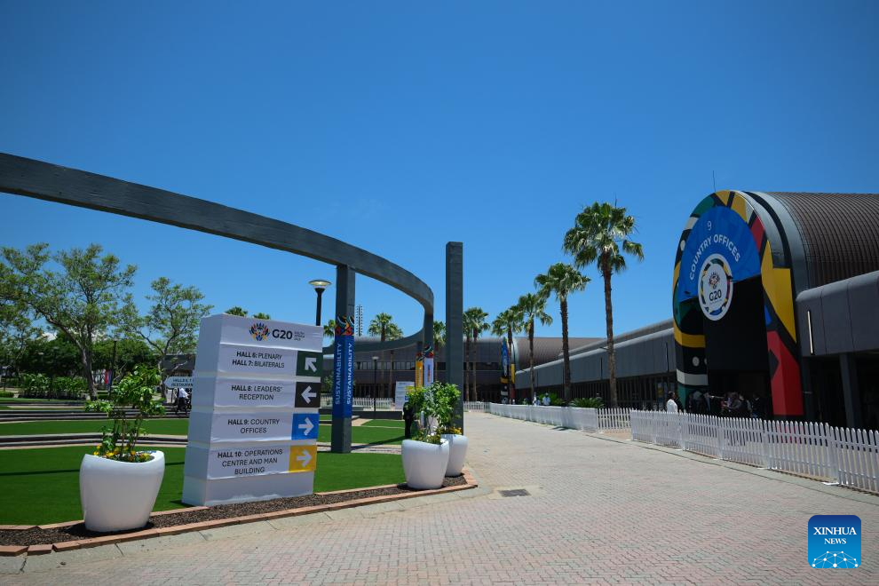 This photo taken on Nov. 22, 2025 shows a scene at the venue for the 20th Group of Twenty (G20) Summit in Johannesburg, South Africa. The Group of Twenty (G20) Summit opened here Saturday, marking the first time the event is being held in Africa. (Xinhua/Chen Wei)