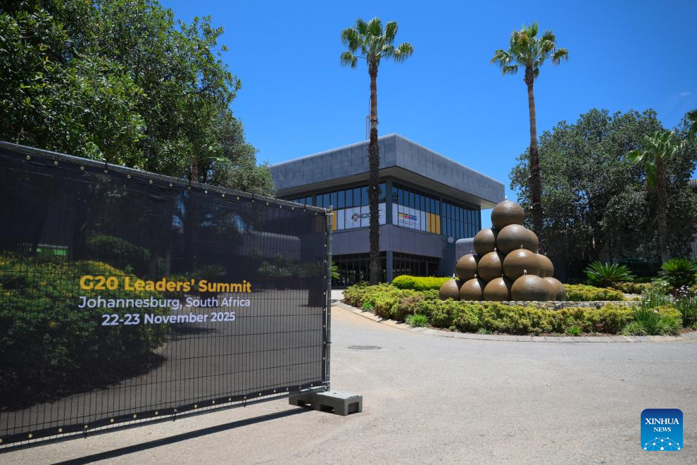 This photo shows an exterior view of the venue for the 20th Group of Twenty (G20) Summit in Johannesburg, South Africa, on Nov. 22, 2025. The Group of Twenty (G20) Summit opened here Saturday, marking the first time the event is being held in Africa. (Xinhua/Yang Guang)