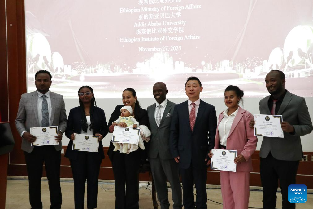 ADDIS ABABA, Nov. 28 (Xinhua) -- A ceremony has been held in Addis Ababa, Ethiopia's capital, to mark the completion of an online Chinese language training program for young Ethiopian diplomats.