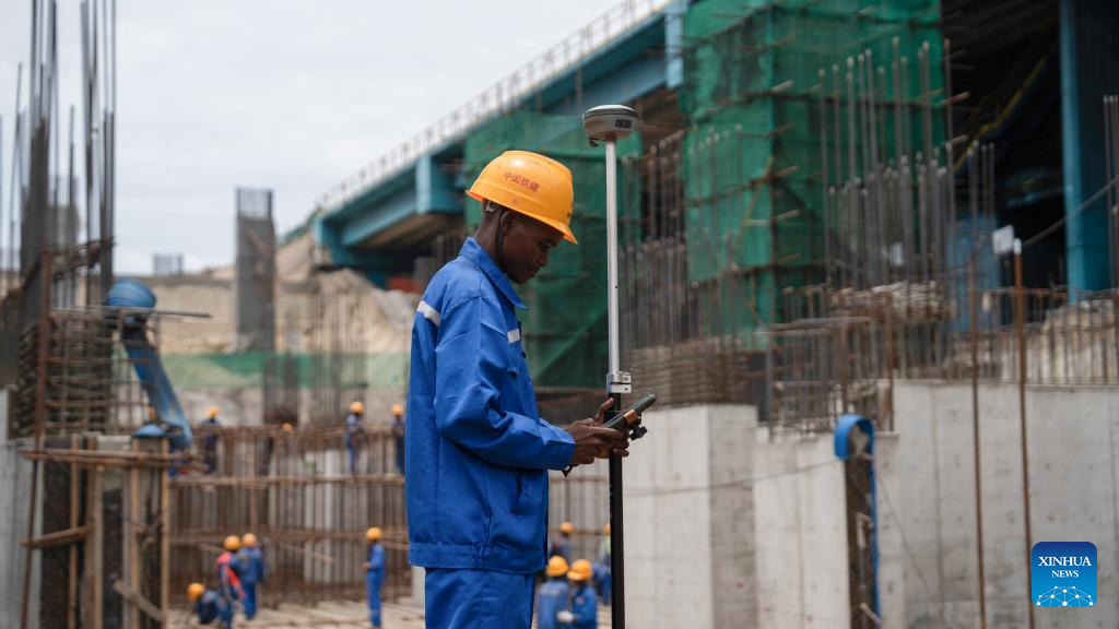 Employees of the China Railway 20th Bureau Group Corporation Limited (CR20) carry out maintenance work in Nacala City, Mozambique, Nov. 21, 2025. (Xinhua/Liu Jie)