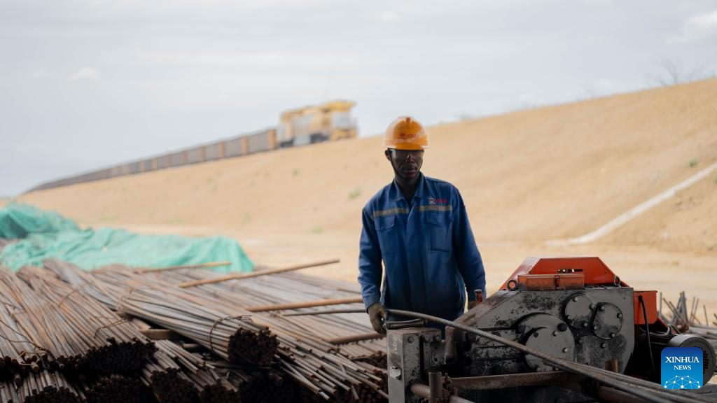 An employee of the China Railway 20th Bureau Group Corporation Limited (CR20) takes part in upgrading work at the old Nacala Port in Nacala City, Mozambique, Nov. 22, 2025. (Xinhua/Liu Jie)
