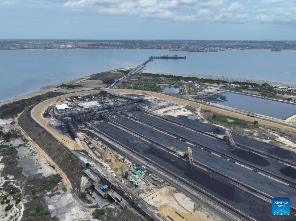 An aerial drone photo shows a view of the coal terminal at the old Nacala Port in Nacala City, Mozambique, Nov. 22, 2025. (Xinhua/Liu Jie)