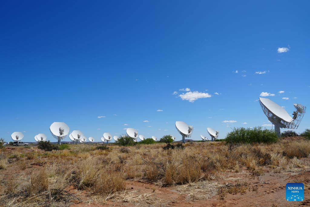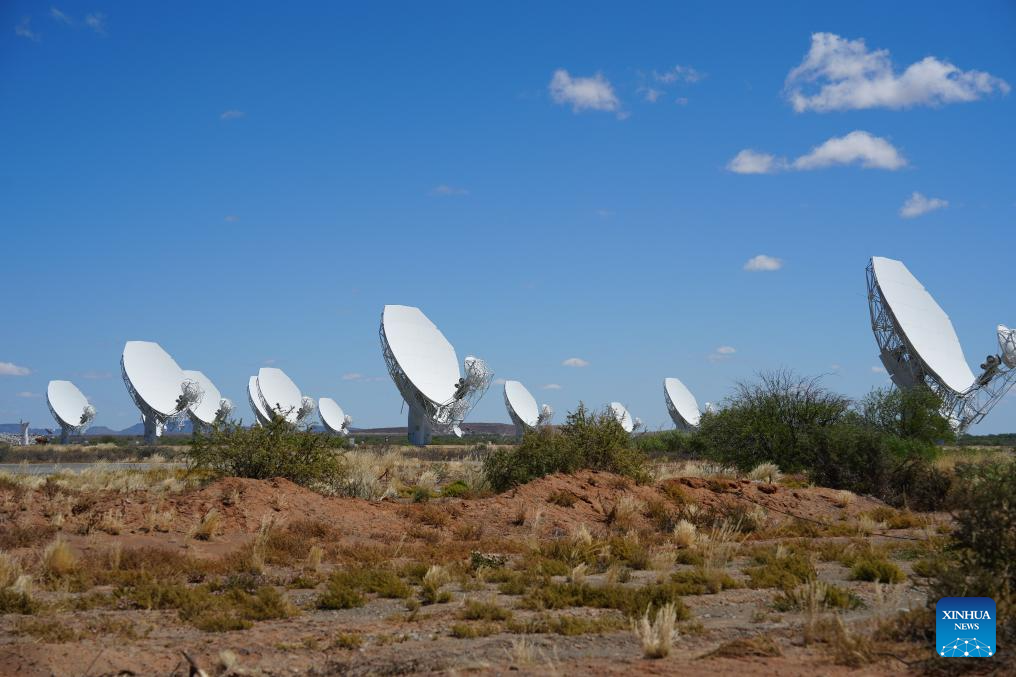 This photo taken on Sept. 24, 2025 shows the antenna array of MeerKAT radio telescope in Carnarvon, Northern Cape Province of South Africa. (Xinhua/Wang Lei)