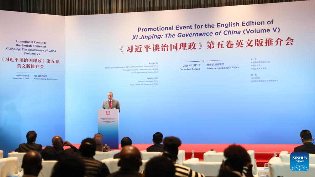 JOHANNESBURG, Dec. 3 (Xinhua) -- A promotional event was held in Johannesburg, South Africa, on Wednesday for the English edition of the fifth volume of "Xi Jinping: The Governance of China," drawing around 200 participants.