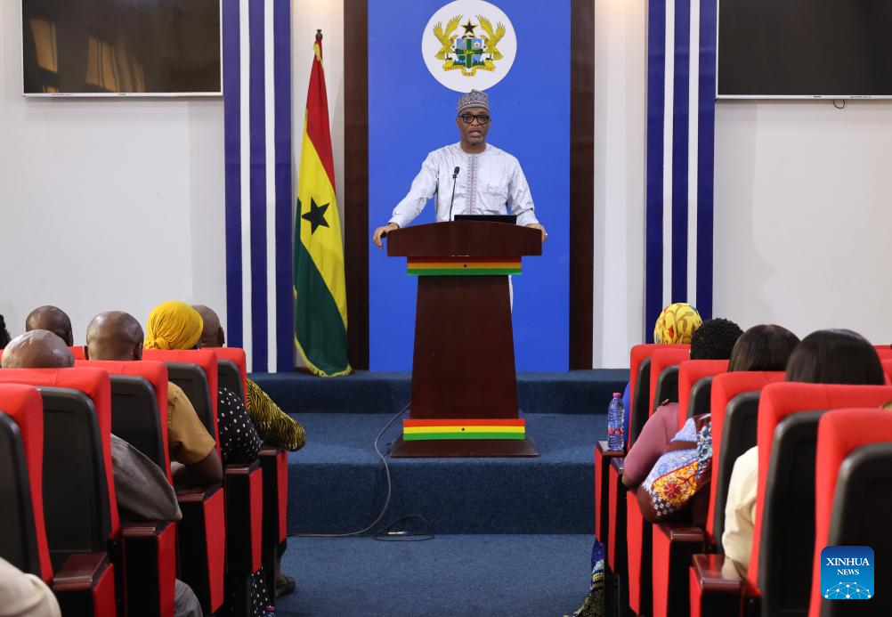 Ghanaian Interior Minister Muntaka Mohammed-Mubarak attends a press conference to launch a new system for easy access to e-governance services in Accra, Ghana, on Dec. 10, 2025. (Photo by Seth/Xinhua)
