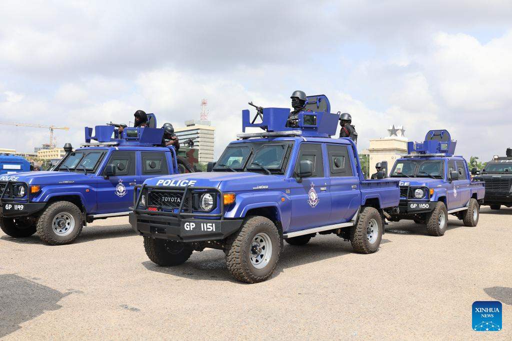 Police vehicles are pictured during a joint exercise launched by Ghanaian security services in Accra, Ghana, Dec. 11, 2025. Ghanaian security services launched a joint exercise on Thursday to showcase their preparedness to maintain peace and security in the country.