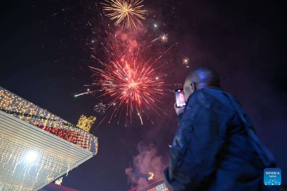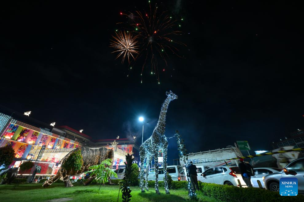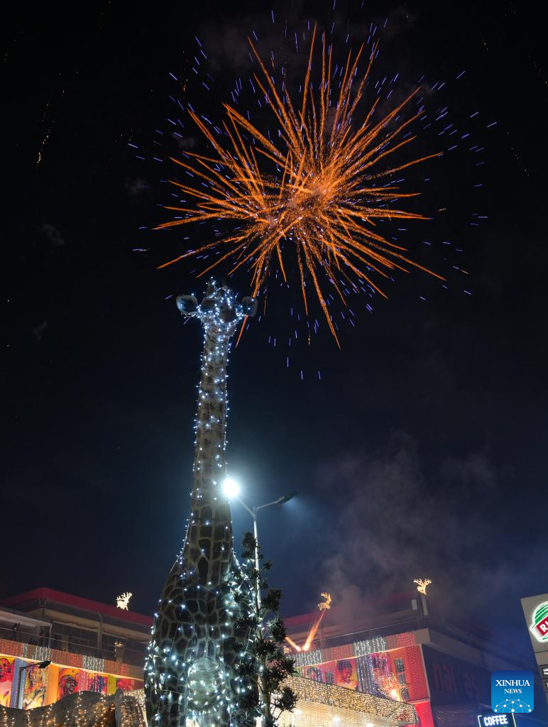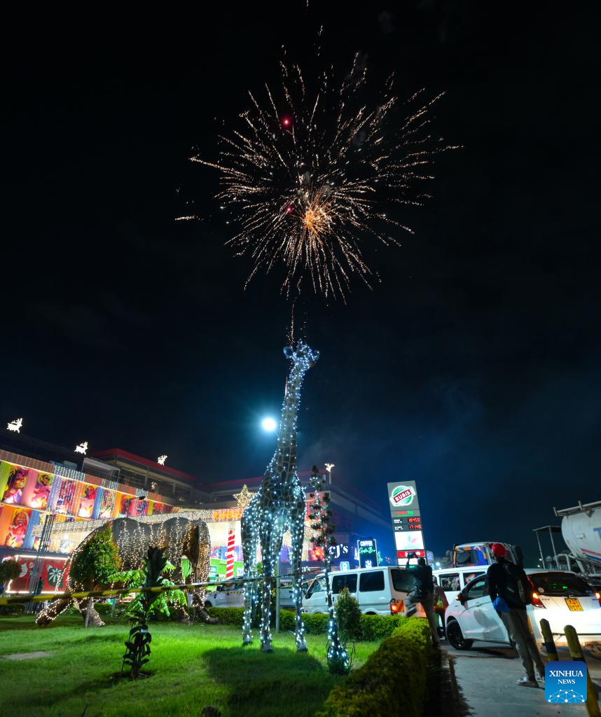 This photo taken on Dec. 11, 2025 shows a fireworks display in Nairobi, Kenya. Kenya's Jamhuri Day or Independence Day, observed on Dec. 12 each year, is one of the most important national holidays in Kenya. Kenya gained independence from Britain on Dec. 12, 1963. (Xinhua/Yang Guang)