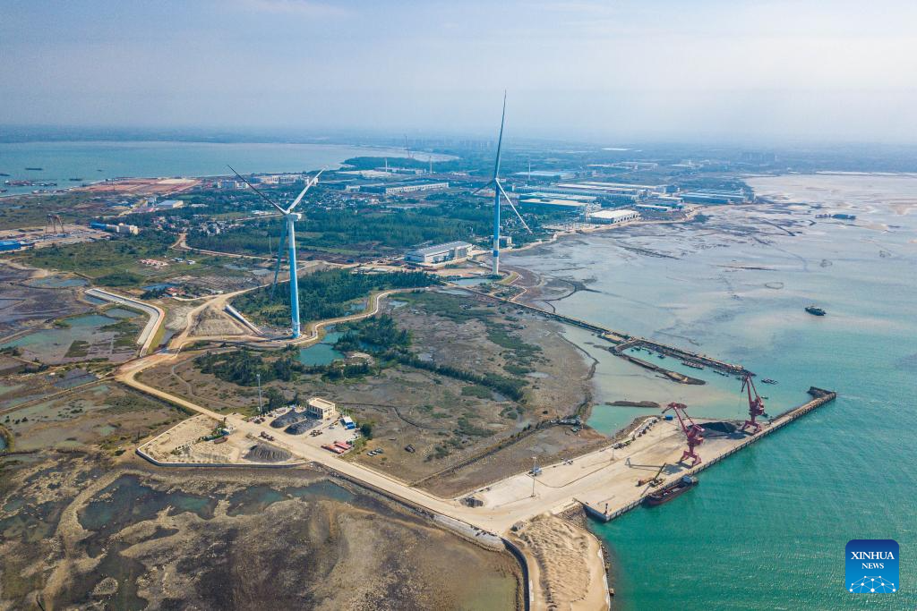 An aerial drone photo taken on Nov. 22, 2025 shows a view of the Lingao Jinpai Port Development Zone in south China's Hainan Province. China's Hainan Free Trade Port (FTP) is preparing for island-wide special customs operations, a major milestone in the opening-up drive of the world's second-largest economy despite rising protectionism worldwide.