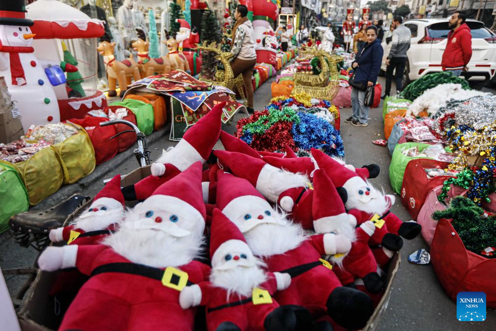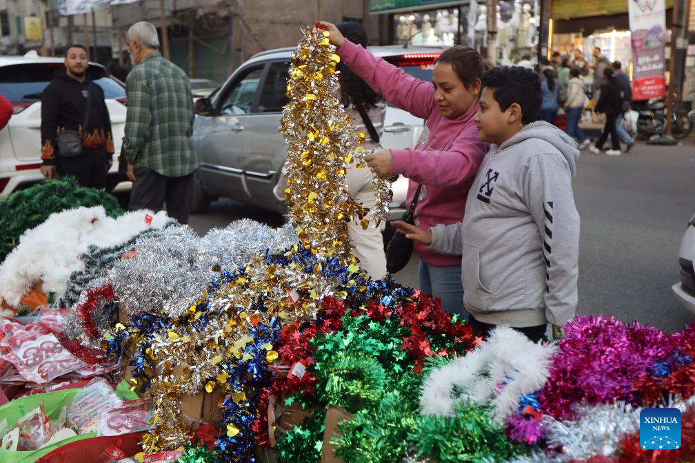 Customers select Christmas decorations at a shop in Cairo, Egypt, Dec. 19, 2025. (Xinhua/Ahmed Gomaa)
