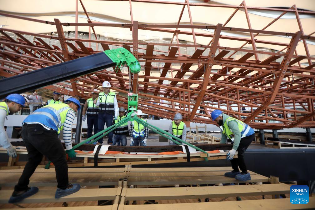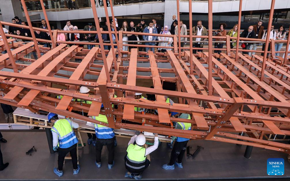 CAIRO, Dec. 23 (Xinhua) -- Egypt on Tuesday began reassembling ancient King Khufu's second solar boat at the newly opened Grand Egyptian Museum (GEM), a restoration process expected to take about four years and open for visitors to watch live.
