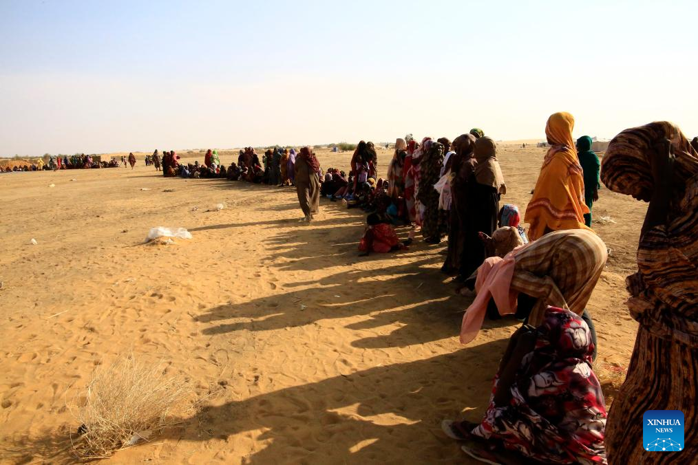 Displaced people wait in a queue to get water at Al-Affad displacement camp in Al-Dabbah city, northern Sudan, Nov. 13, 2025. (Photo by Mohamed Khidir/Xinhua)