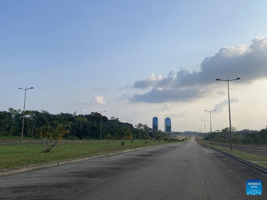 This photo taken with a mobile phone on Aug. 23, 2023 shows a view of the Ciudad de la Paz under construction in Djibloho Province, Equatorial Guinea. Equatorial Guinean President Teodoro Obiang Nguema Mbasogo has affirmed the relocation of the capital city from Malabo, located on Bioko Island, to the mainland city of Ciudad de la Paz in Djibloho Province, according to the state-run Information and Press Office of Equatorial Guinea.