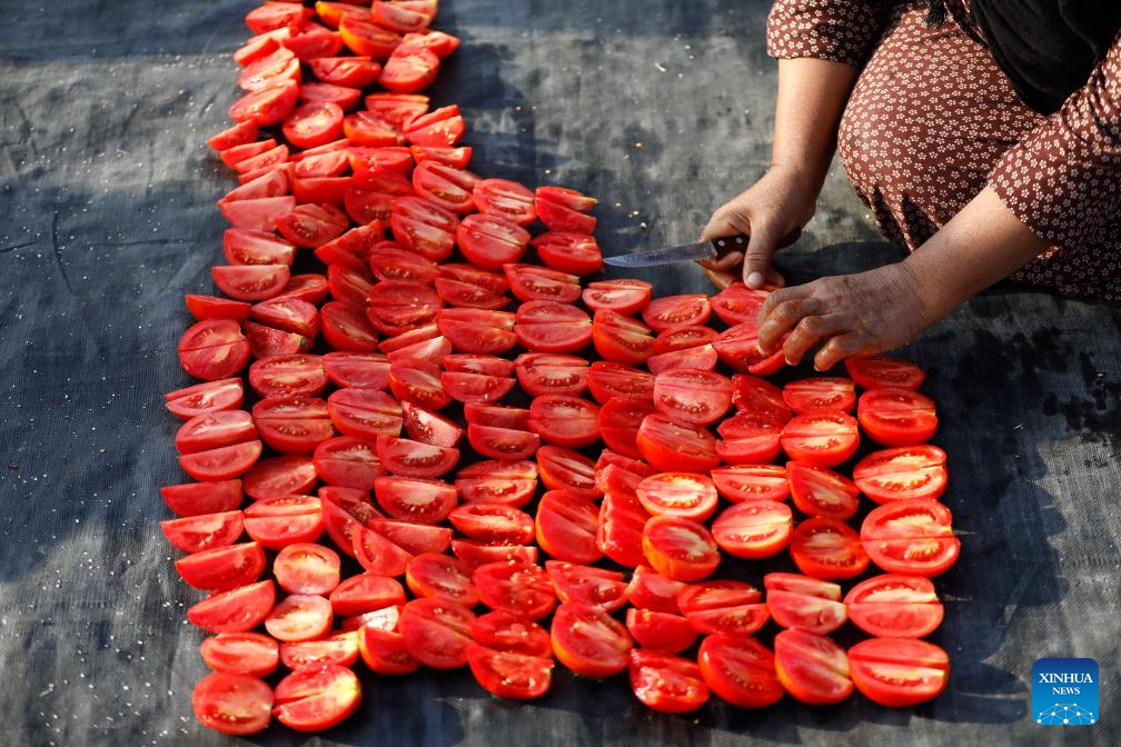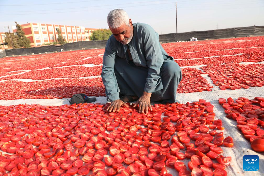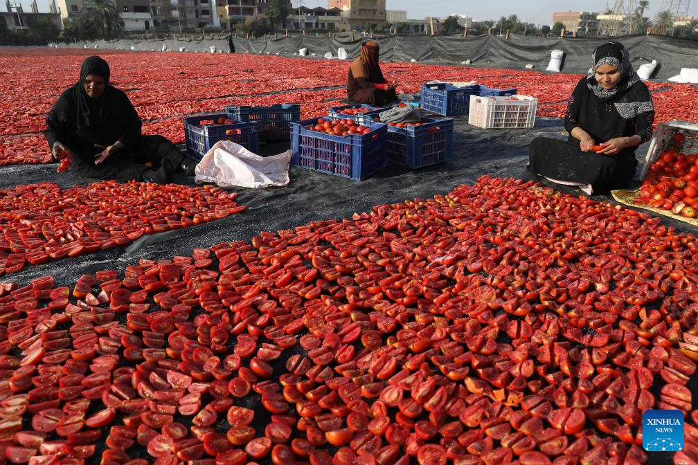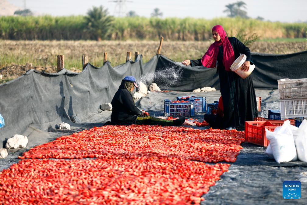 Tomatoes are sun-dried in a village in Luxor, Egypt, on Jan. 9, 2026. Several villages across Luxor Governorate have seen a rise in tomato drying activities this season, which have become a significant income source for local farmers. The drying process takes place mainly in January and February, when Luxor enjoys warm winter sunlight. The dried tomatoes are exported to international markets, aided by government efforts to promote agricultural exports. (Xinhua/Ahmed Gomaa)