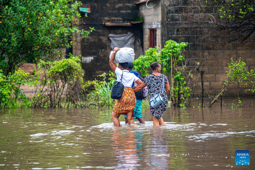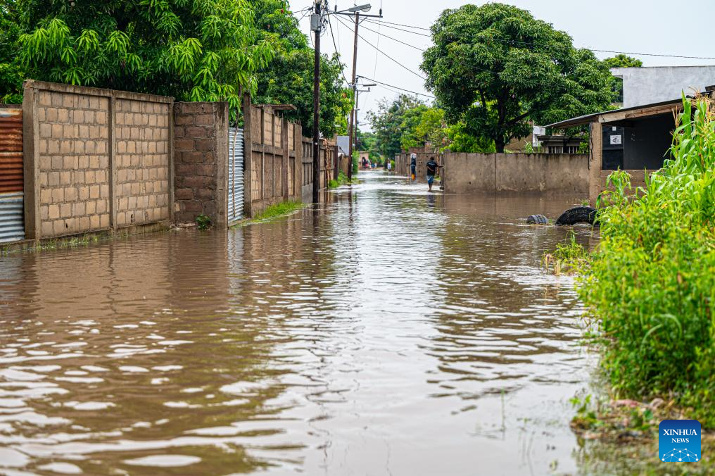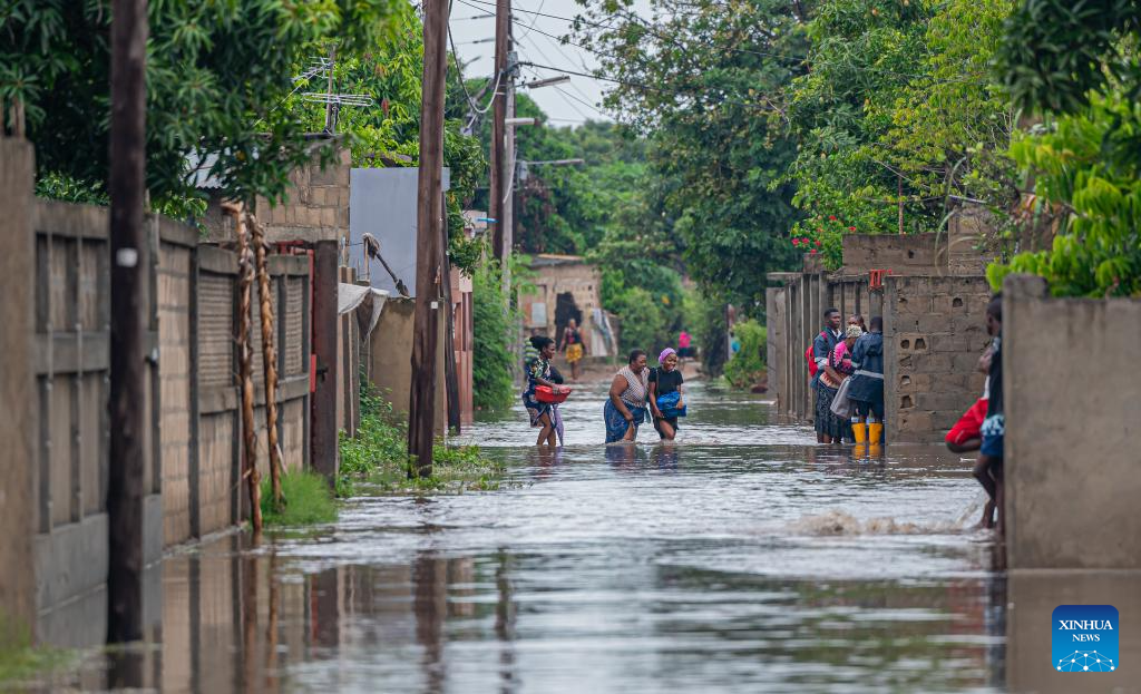 Residents wade through floodwater caused by heavy rainfall in Matola City, Maputo Province, Mozambique, Jan. 12, 2026. Mozambique is currently in the peak of its rainy season, a period marked by frequent alerts for heavy rains and strong winds, particularly in the central and southern regions. (Photo by Mendes Mondlane/Xinhua)