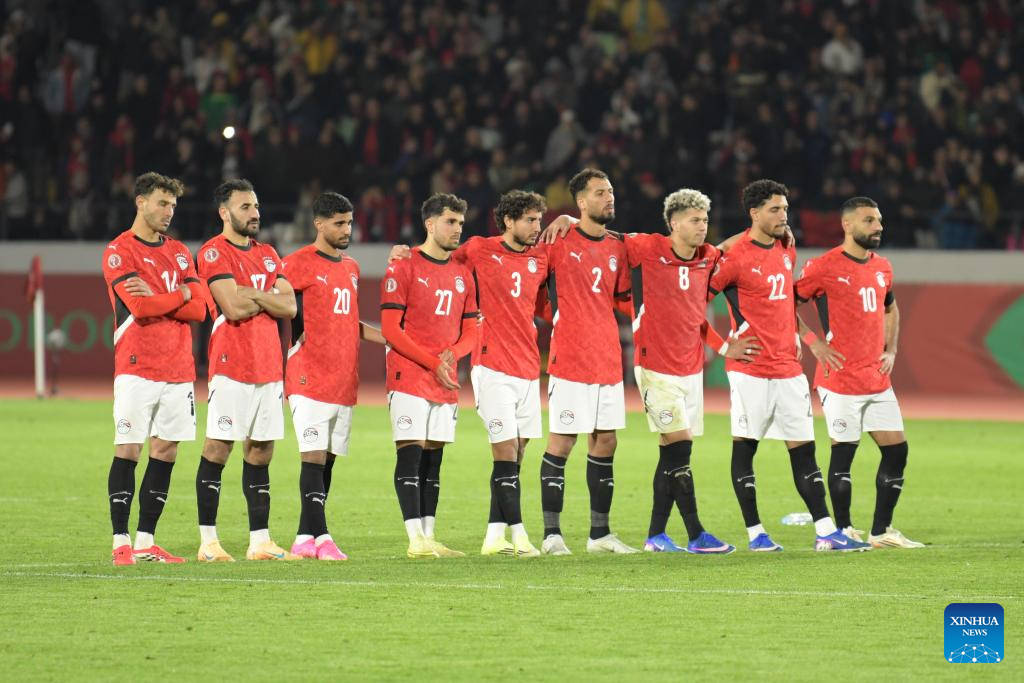 Egypt's players react as they watch the penalty shoot out during the Africa Cup of Nations third place football match between Egypt and Nigeria in Casablanca, Morocco, Jan. 17, 2026. (Photo by Aissa/Xinhua)