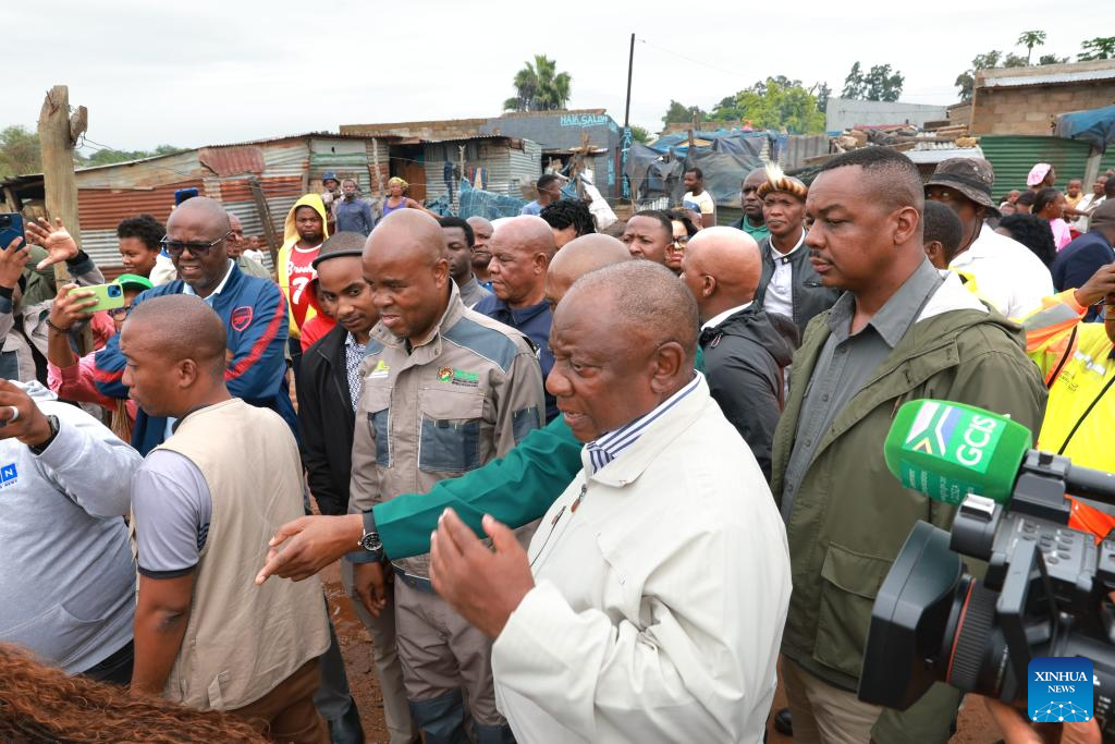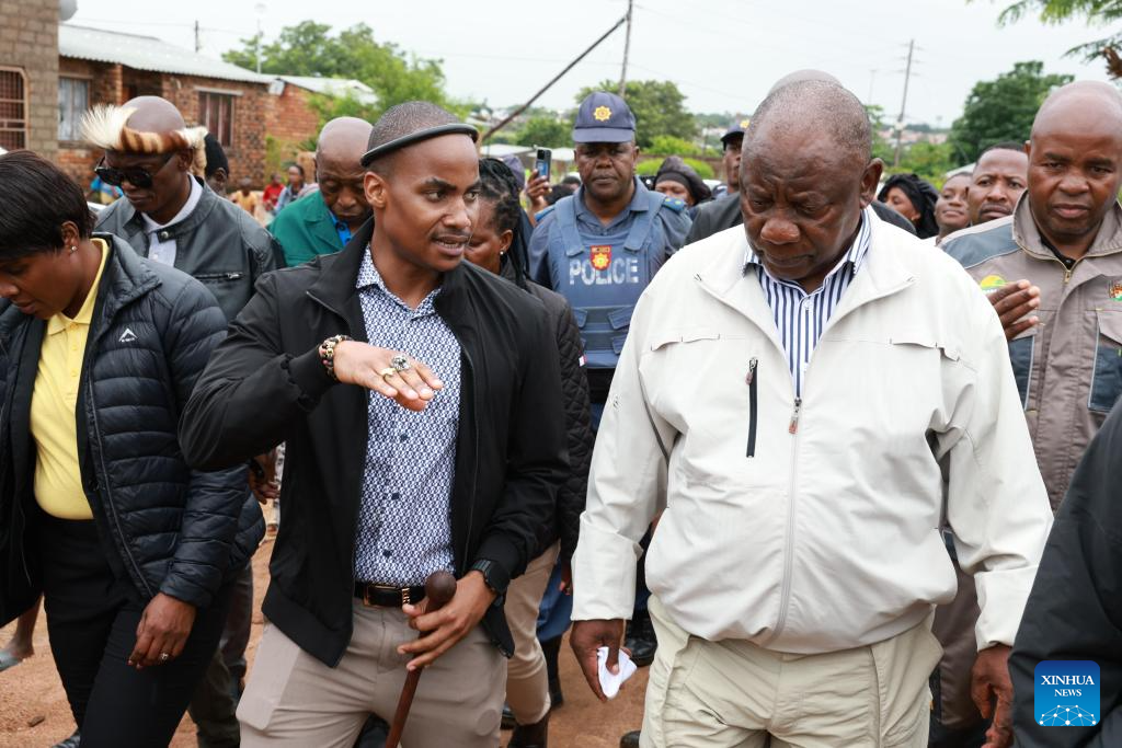 South African President Cyril Ramaphosa inspects flood-hit areas in Nkomazi, Mpumalanga Province, South Africa, on Jan. 19, 2026. Weeks of persistent heavy rainfall and widespread flooding have struck several countries in Southern Africa, including South Africa, Mozambique and Zimbabwe, leaving more than 200 people dead, destroying property and prompting large-scale evacuations and rescue operations.