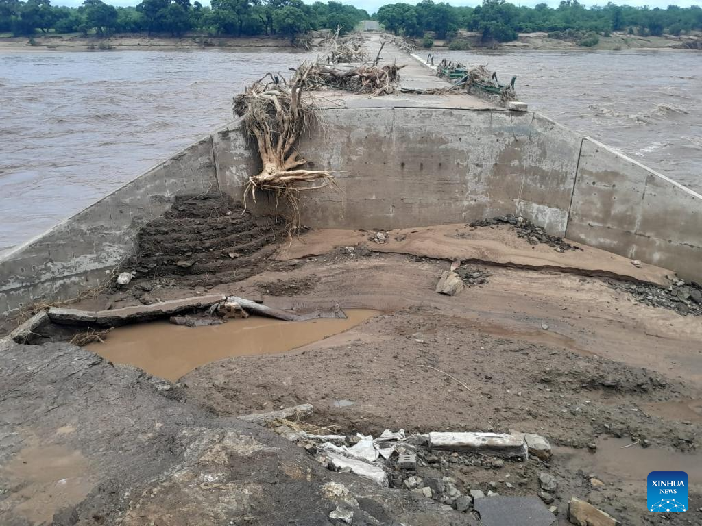 This photo taken on Jan. 19, 2026 shows a road damaged by floods in Mpumalanga Province, South Africa. Weeks of persistent heavy rainfall and widespread flooding have struck several countries in Southern Africa, including South Africa, Mozambique and Zimbabwe, leaving more than 200 people dead, destroying property and prompting large-scale evacuations and rescue operations.