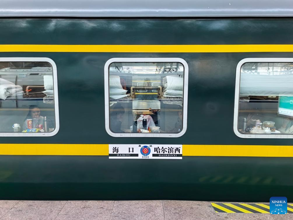 HARBIN, Jan. 20 (Xinhua) -- With a whistle piercing the falling snow, a train departed Harbin west station in northeast China's Heilongjiang Province on a 48-hour journey to the sunny beaches of Hainan, a tropical island known for its warm climate.