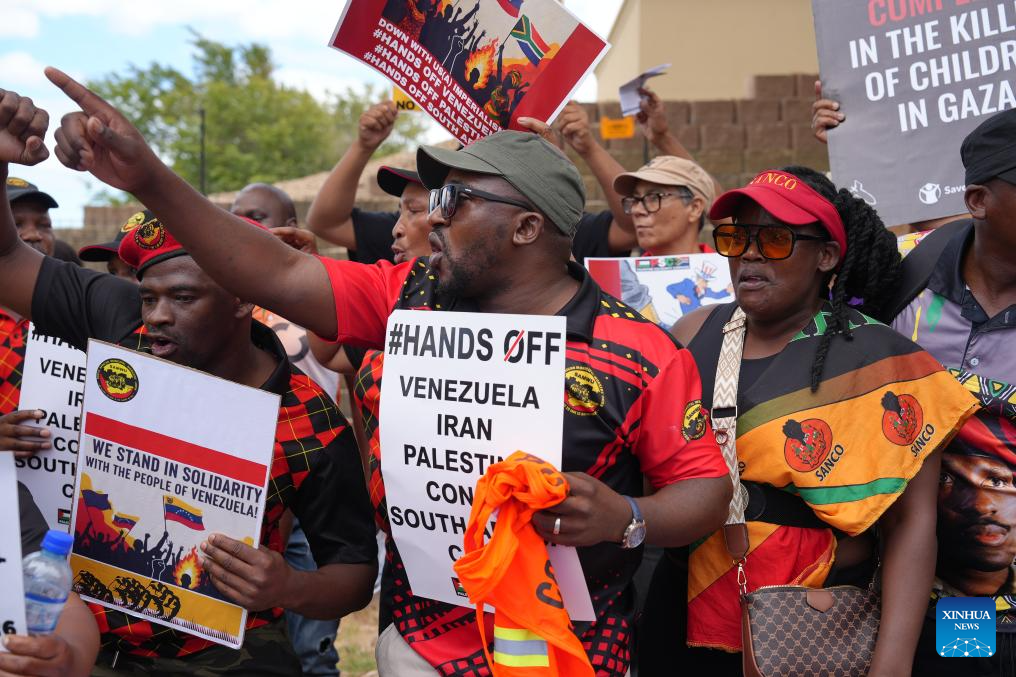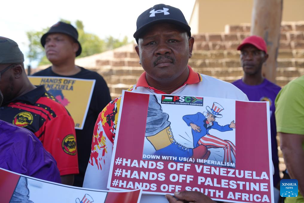 At the protest, Barry Mitchell, a member of the SACP's Central Committee, told Xinhua that the demonstration was aimed at condemning U.S. imperialism, in particular its action against Venezuela and the capture of its head of state.
