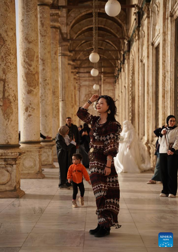 A tourist poses for photo at the Saladin Citadel in Cairo, Egypt, Jan. 30, 2026. (Xinhua/Zhang Haobo)