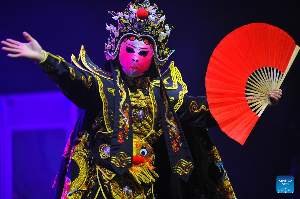 An artist stages a face-changing performance during a cultural event celebrating the upcoming Chinese New Year in Tunis, Tunisia, Jan. 31, 2026. Kicking off here on Saturday, the two-day event is themed on the Chinese New Year and the ancient Silk Road. (Photo by Adel Ezzine/Xinhua)