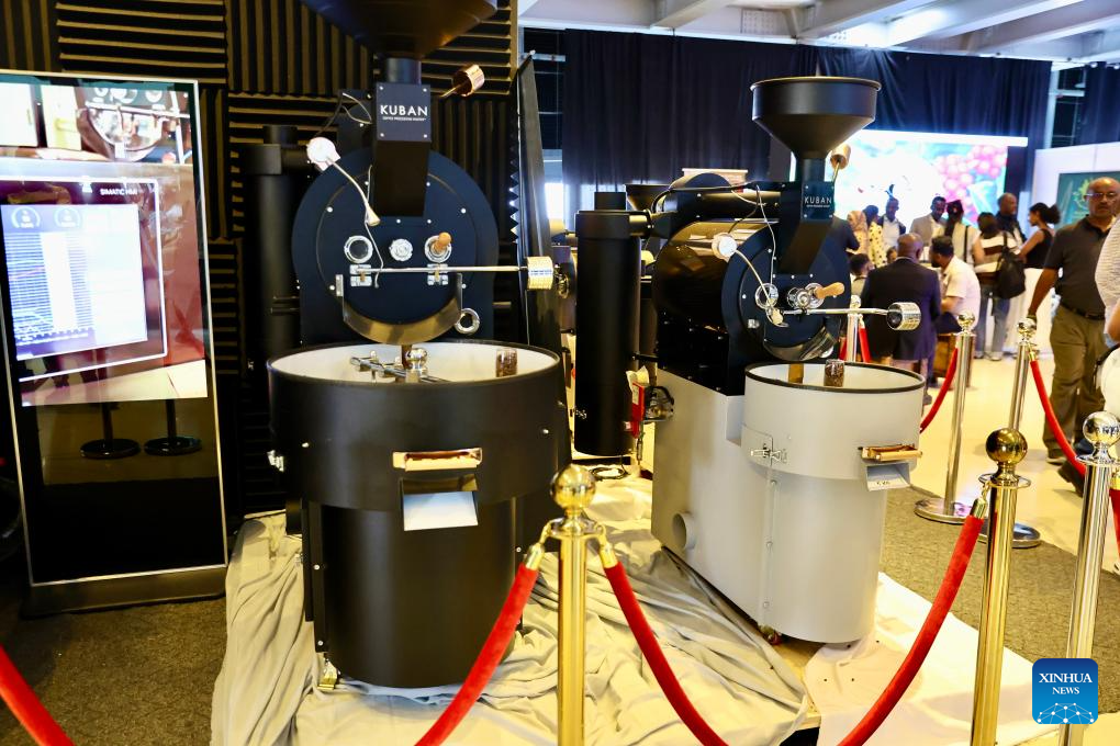 Coffee roasters are on display during the 22nd African Fine Coffees Conference and Exhibition in Addis Ababa, Ethiopia, Feb. 6, 2026. The 22nd African Fine Coffees Conference and Exhibition, running from February 4 to 6, 2026, has brought together producers, exporters, traders, roasters, investors, policymakers, and development partners to promote African coffee excellence and strengthen global market linkages. (Xinhua/Geng Xinning)