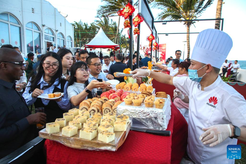 Tanzanians and overseas Chinese enjoy food together in Dar es Salaam, Tanzania, Feb. 6, 2026. Tanzanians on Friday evening joined overseas Chinese to celebrate the upcoming Spring Festival, also known as the Chinese New Year, at the Chinese Embassy in Tanzania.(Xinhua/Emmanuel Herman)
