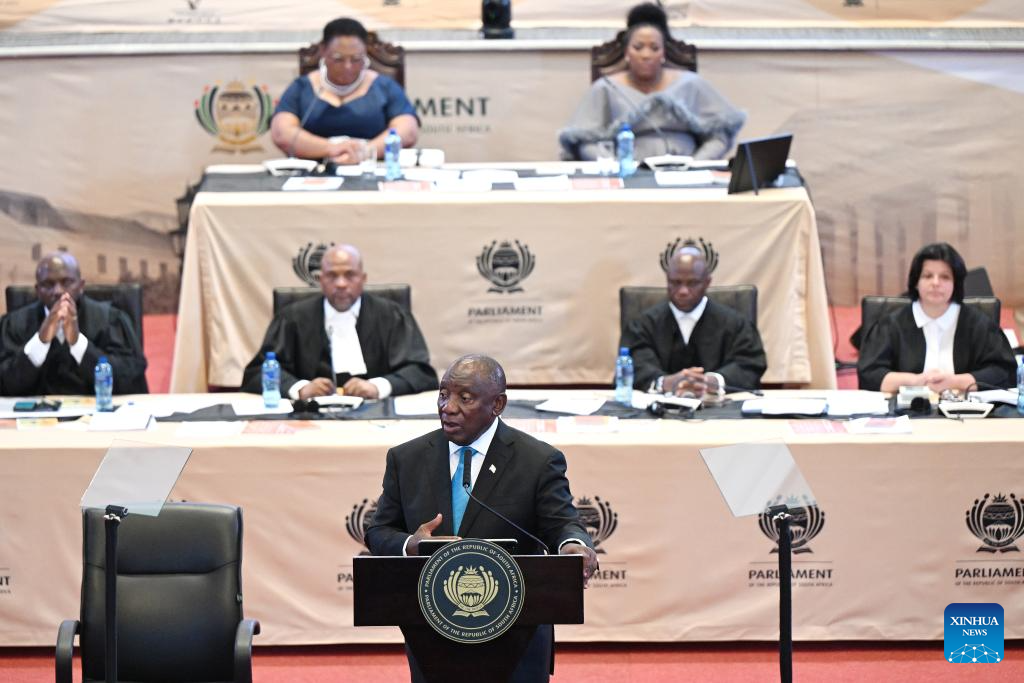 South African President Cyril Ramaphosa delivers the State of the Nation Address at the Cape Town City Hall in Cape Town, South Africa, on Feb. 12, 2026. South African President Cyril Ramaphosa announced on Thursday the decision to deploy the army to help tackle organized crime, describing it as the most immediate threat faced by the country. (Photo by Xabiso Mkhabela/Xinhua)