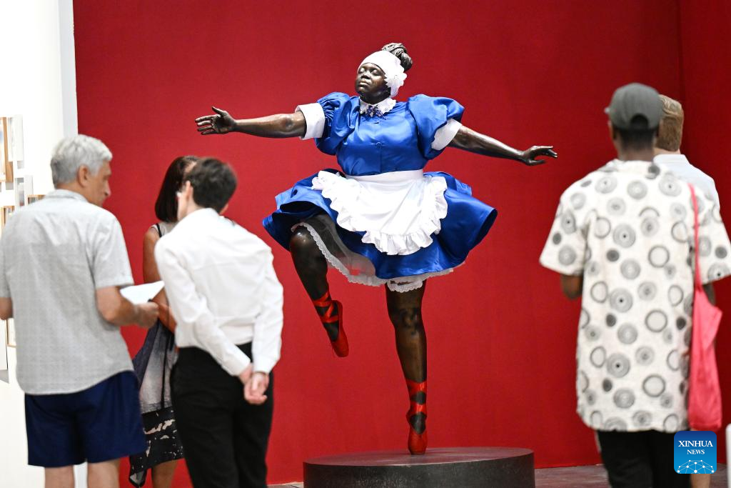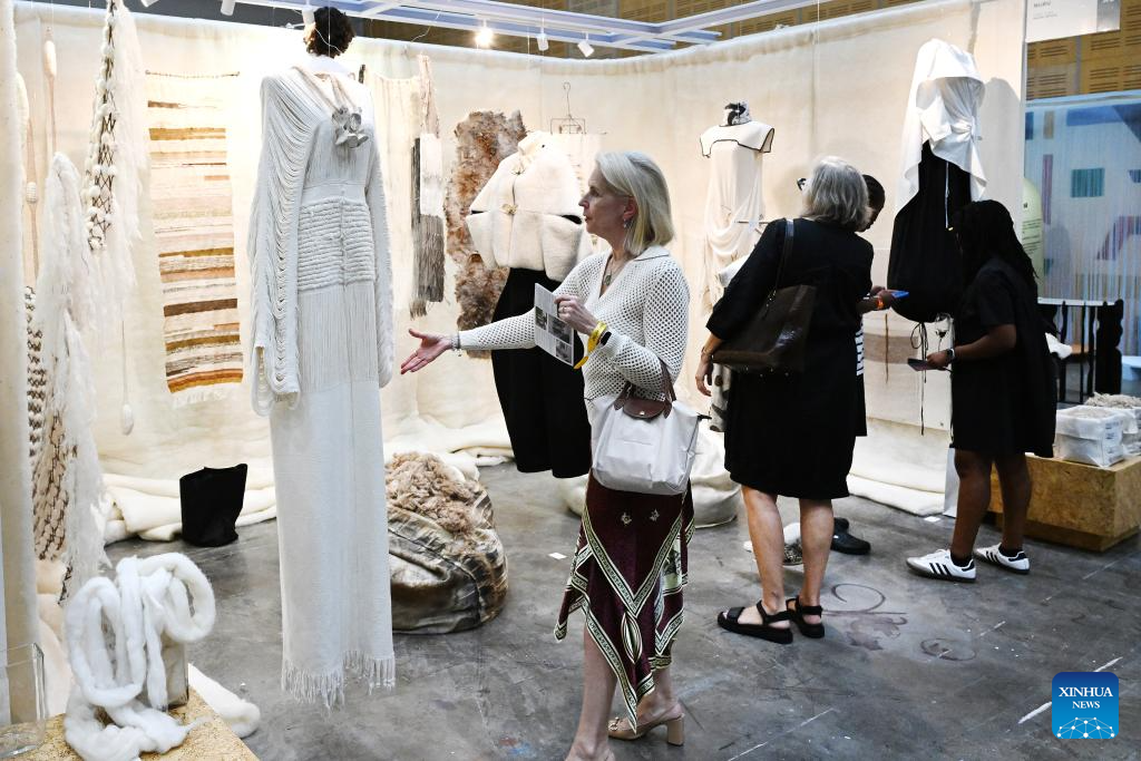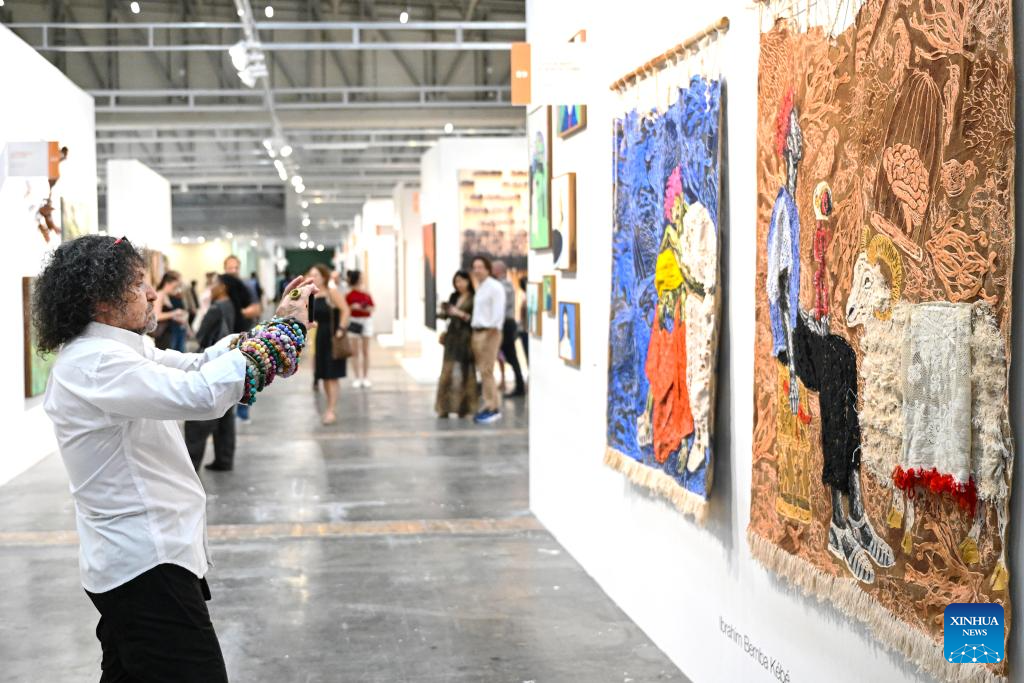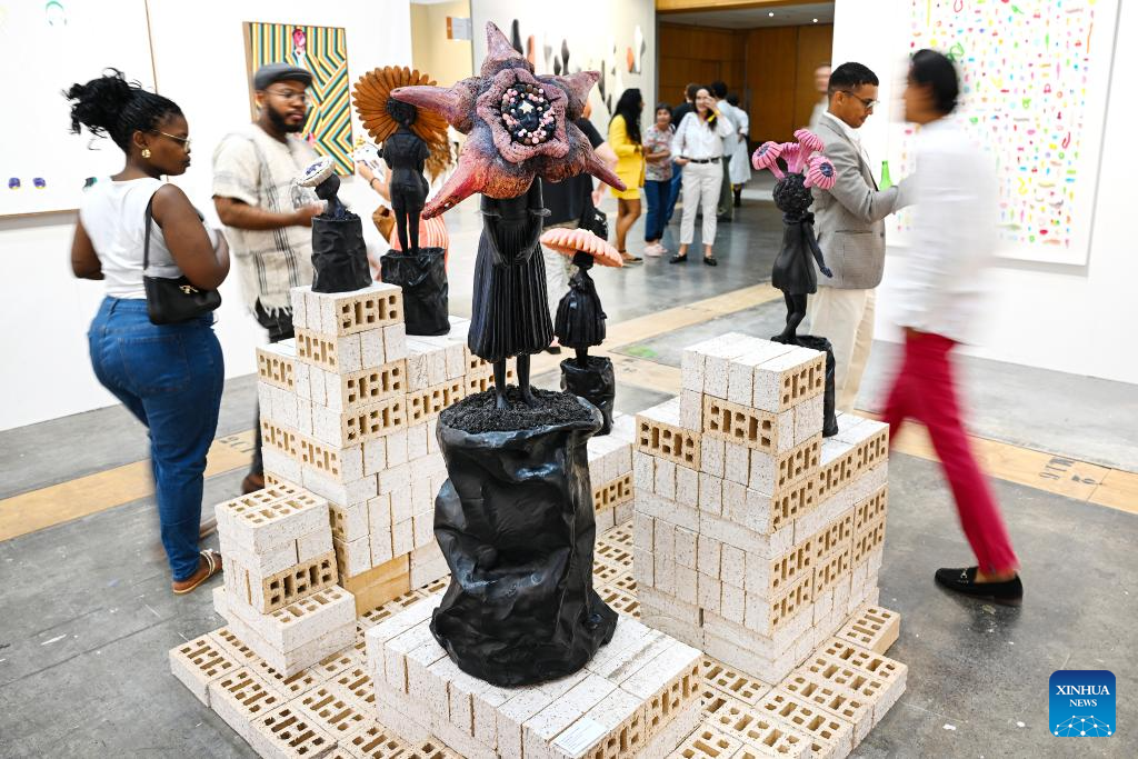 The Cape Town Art Fair 2026 kicked off here on Friday. This year's edition takes place from Feb. 20 to 22 at the Cape Town International Convention Center, featuring 126 exhibitors from 34 global cities and showcasing works by more than 490 artists, with over 30,000 visitors expected. (Photo by Xabiso Mkhabela/Xinhua)