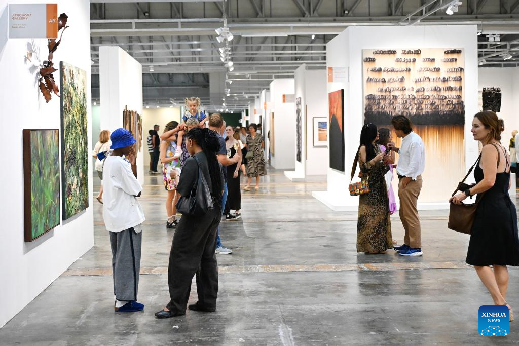 People visit the Cape Town Art Fair 2026 at the Cape Town International Convention Center in Cape Town, South Africa, Feb. 20, 2026.