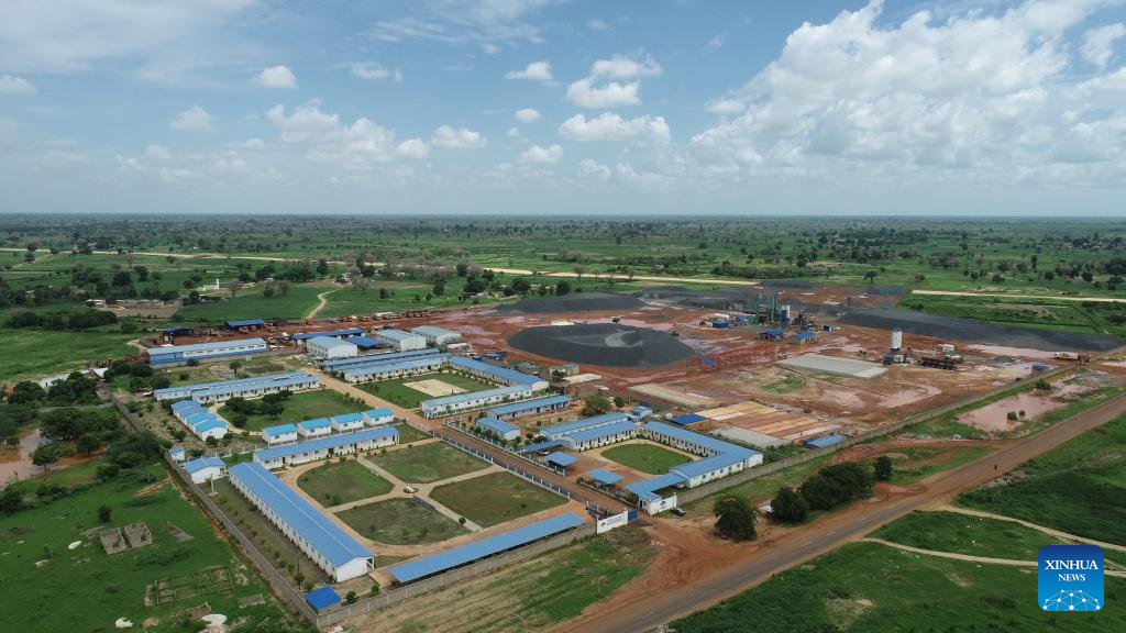 An aerial drone photo taken on Aug. 25, 2023 shows a construction camp of Mbour-Kaolack highway project in Senegal. Stretching nearly 100 km across western Senegal, the Mbour-Kaolack highway project is approaching completion, with construction teams working to finalize the remaining sections.(China Road and Bridge Corporation/Handout via Xinhua)