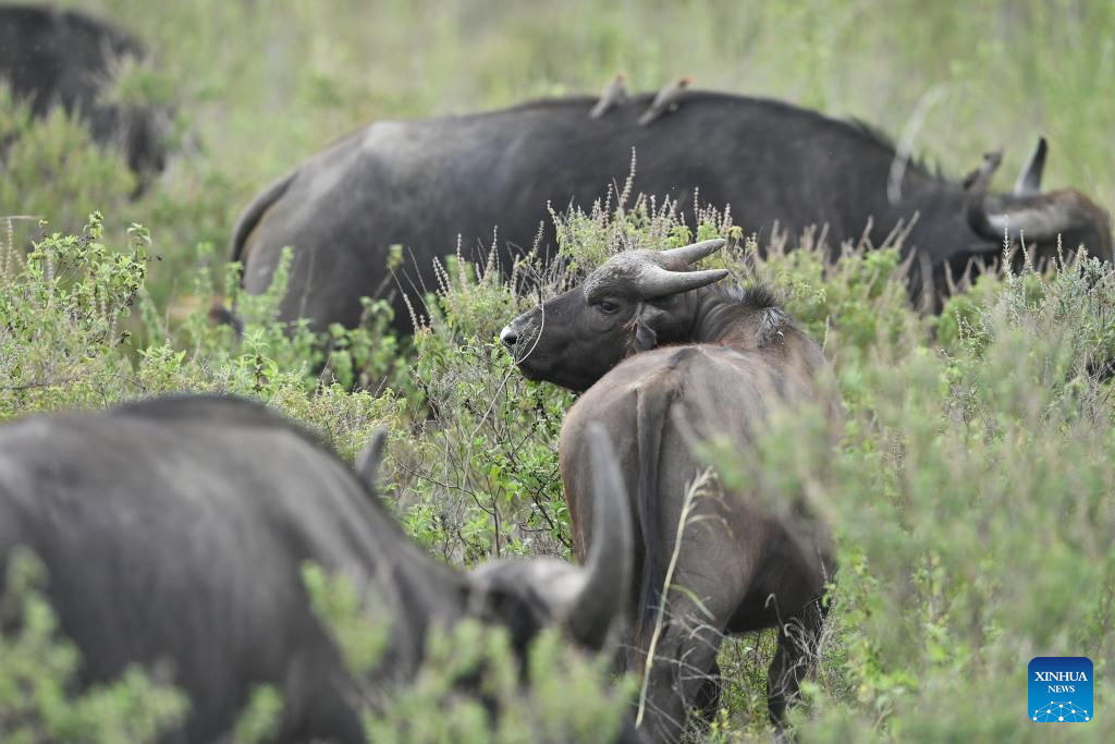 This photo taken on Feb. 26, 2026 shows a herd of African buffalos at the Nairobi National Park in Kenya. The Nairobi National Park is one of the few capital-based reserves in the world. Spanning 117 square kilometers of savannah, forests, and wetlands dotted with valleys and seasonal lakes, the park shelters over 100 mammal species and 400 bird varieties. (Xinhua/Liu Qiong)