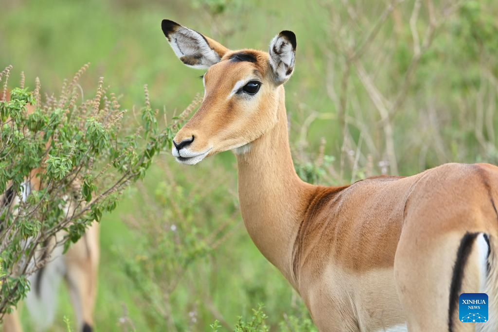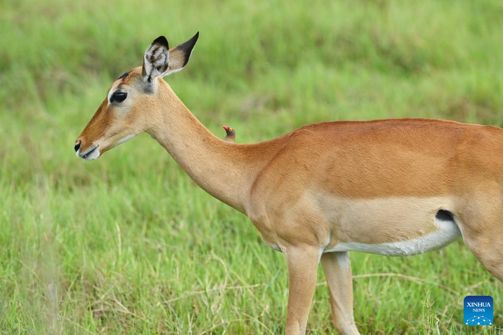 This photo taken on Feb. 26, 2026 shows an impala at the Nairobi National Park in Kenya. The Nairobi National Park is one of the few capital-based reserves in the world. Spanning 117 square kilometers of savannah, forests, and wetlands dotted with valleys and seasonal lakes, the park shelters over 100 mammal species and 400 bird varieties. (Xinhua/Liu Qiong)