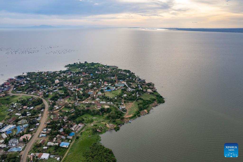 An aerial drone photo taken on Feb. 27, 2026 shows a view of Kisumu, Kenya. Kisumu, located on the shores of Lake Victoria in western Kenya, stands as the country's third-largest city. (Xinhua/Xie Jianfei)