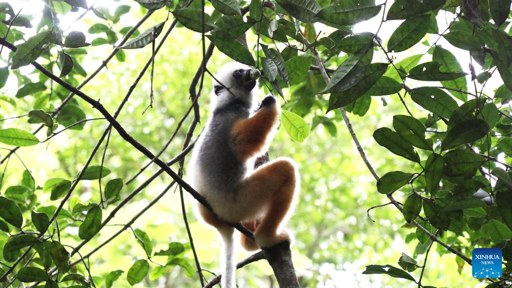 Diademed sifakas, a species of lemur, are seen at Andasibe National Park in Madagascar, March 1, 2026. As the world's fourth-largest island, Madagascar is home to a unique ecosystem and an extraordinary variety of plant and animal species, with lemurs among the most distinctive representatives of the country's biodiversity. Scientists have identified more than 100 species of lemurs in Madagascar. (Xinhua/Chen Shaohua)
