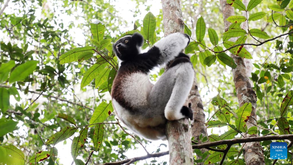 A diademed sifaka, a species of lemur, is seen at Andasibe National Park in Madagascar, March 1, 2026. As the world's fourth-largest island, Madagascar is home to a unique ecosystem and an extraordinary variety of plant and animal species, with lemurs among the most distinctive representatives of the country's biodiversity. Scientists have identified more than 100 species of lemurs in Madagascar. (Xinhua/Chen Shaohua)