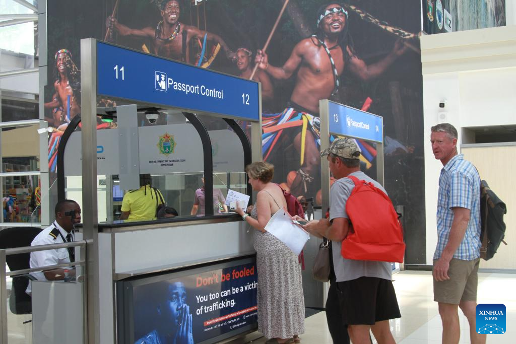 People go through passport control at Robert Gabriel Mugabe International Airport in Harare, Zimbabwe, on March 5, 2026. The passenger throughput of Zimbabwe's Robert Gabriel Mugabe International Airport has recorded growth, especially following a China-financed expansion project commissioned in 2023, reaching about 1.65 million in 2025, according to the Airports Company of Zimbabwe (ACZ). (Photo by Tafara Mugwara/Xinhua)