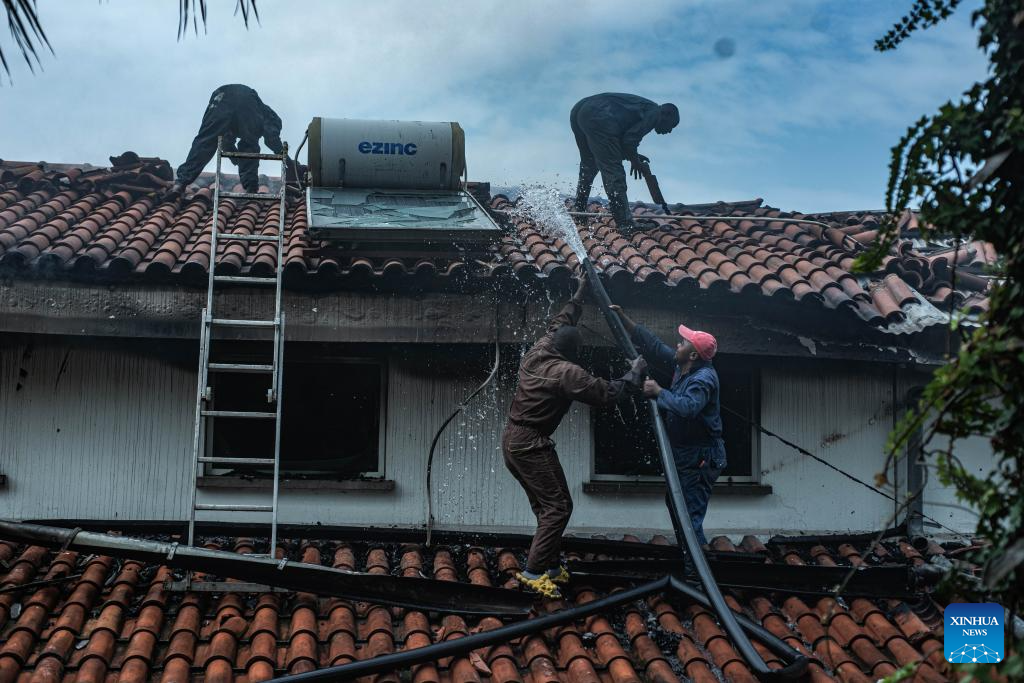 Rescue workers put out fire after a drone attack in Goma, eastern Democratic Republic of the Congo (DRC), on March 11, 2026. Explosions were heard on Wednesday morning. The March 23 Movement (M23) rebel group attributed a drone strike to the Congolese government's military forces. According to a provisional toll released by M23, three people were killed, including a French national working for the United Nations Children's Fund. (Str/Xinhua)
