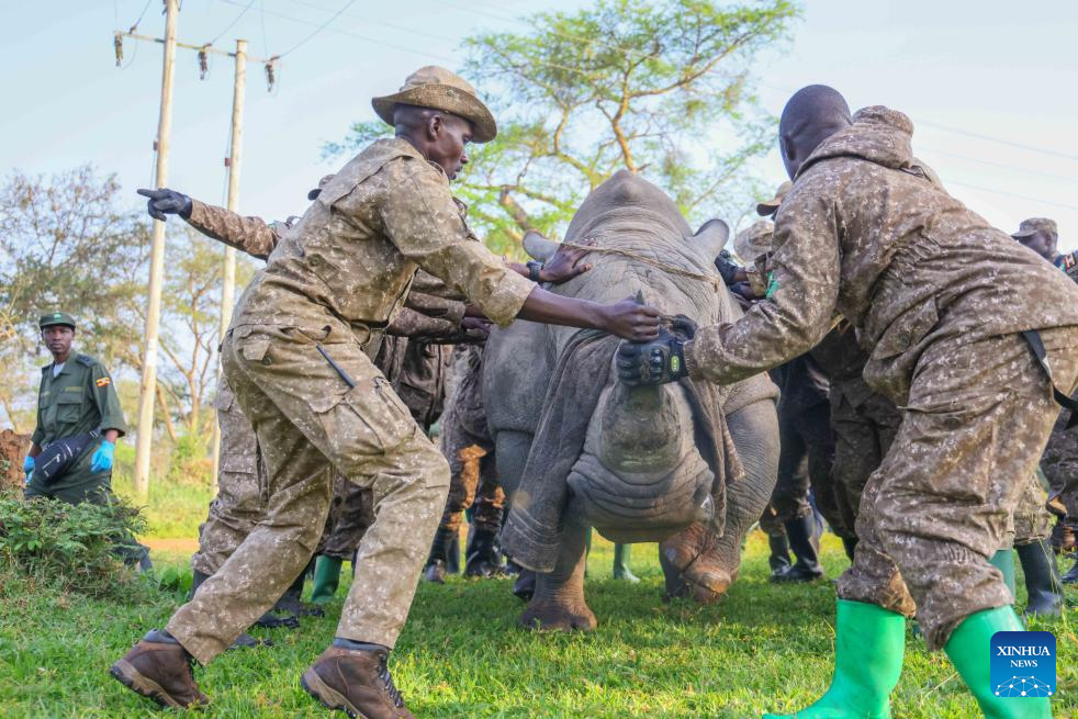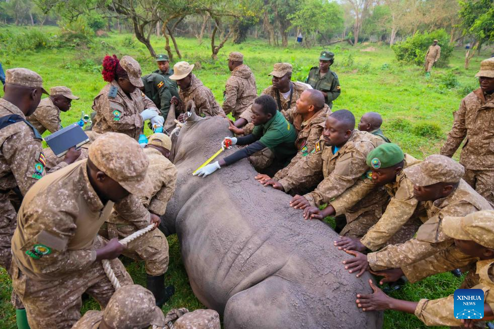KAMPALA, March 17 (Xinhua) -- Uganda on Tuesday launched a phased relocation of southern white rhinos to Kidepo Valley National Park in the country's northeast, marking their return more than 40 years after disappearing from the area.