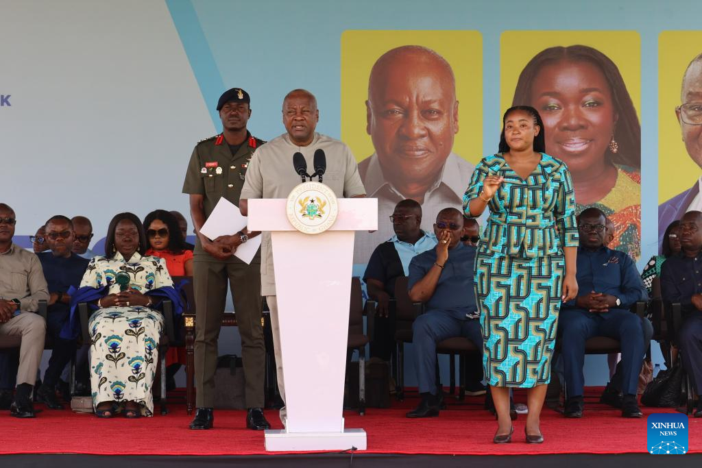 Ghanaian President John Dramani Mahama delivers a speech at an agriculture technology fair in Accra, Ghana, March 17, 2026. (Xinhua/Seth)