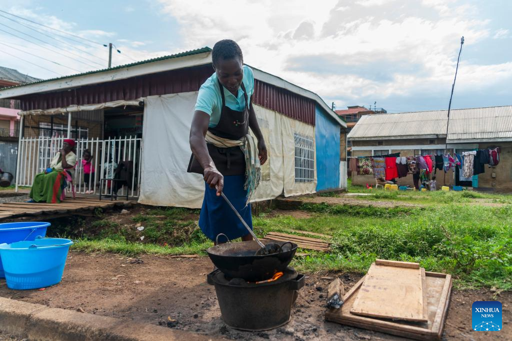 A woman cooks with a clay stove introduced by Chinese experts, in Kisumu, Kenya, Feb. 28, 2026. As the largest freshwater lakes in China and Africa, respectively, Poyang Lake and Lake Victoria have witnessed a cross-continental collaboration for sustainable development and ecological preservation. (Xinhua/Xie Jianfei)