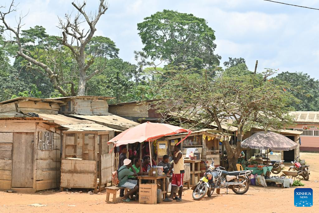 Roadside shops are pictured at Malombo Village, Cameroon, March 27, 2026. (Xinhua/Liu Qiong)