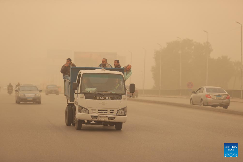 Vehicles are seen on a road amid a dust storm in Cairo, Egypt, April 2, 2026. (Xinhua/Ahmed Gomaa)