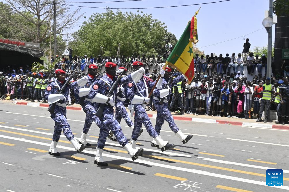 DAKAR, April 4 (Xinhua) -- Senegal on Saturday marked the 66th anniversary of its independence with celebrations held across the country, highlighted by a grand civil-military parade presided over by President Bassirou Diomaye Faye in the central city of Thies, about 70 km east of the country's capital, Dakar.
