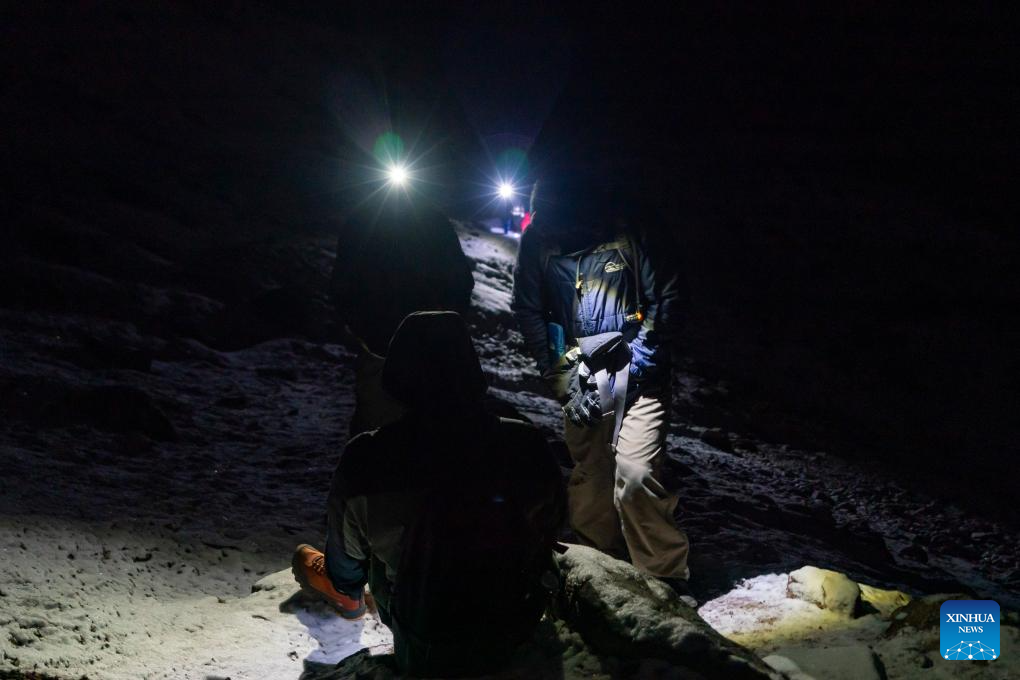 Visitors hike in Mount Kenya National Park, Meru County, central Kenya, April 11, 2026. Located close to the Equator in central Kenya, Mount Kenya is the second-highest mountain in Africa as its highest peak, Batian, reaches 5,199 meters.