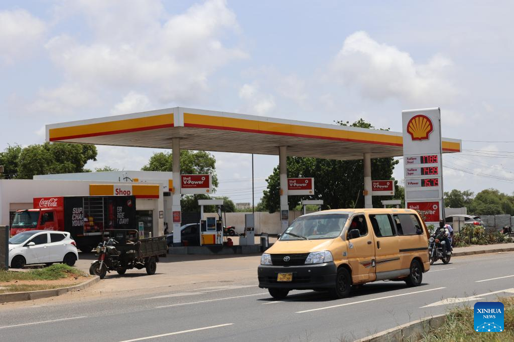 Photo taken on April 16, 2026 shows a petrol station in Accra, Ghana. (Photo by Seth/Xinhua)
